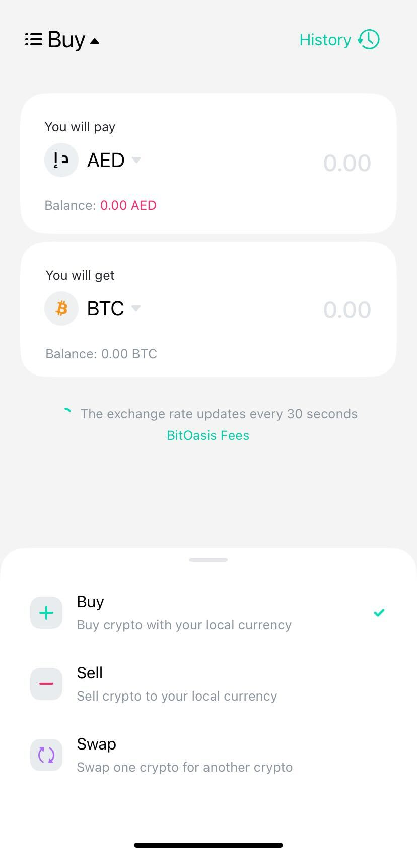 BitOasis Lite offers a fast and simple way to buy, sell, or swap crypto. Follow these steps to complete your purchase: